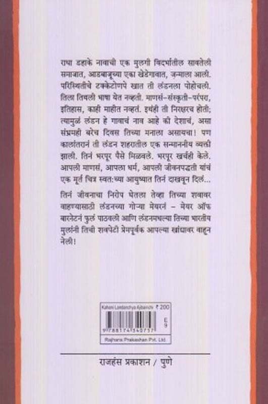 राधा डहाके नावाची एक मुलगी विदर्भातील सावतेली समाजात, आडबाजूच्या एका खेडेगावात, जन्माला आली. परिस्थितीचे टक्केटोणपे खात ती लंडनला पोहोचली. तिला तिथली भाषा येत नव्हती. माणसं-संस्कृती-परंपरा, इतिहास, काही माहीत नव्हतं. इथही ती निरक्षरच होती; त्यामुळं लंडन हे गावाचं नाव आहे की देशाचं, असा संभ्रमही बरेच दिवस तिच्या मनाला असायचा! पण कालांतरानं ती लंडन शहरातील एक सन्माननीय व्यक्ती झाली. तिनं भरपूर पैसे मिळवले. भरपूर खर्चही केले. आपली माणसं, आपला धर्म, आपली जीवनपद्धती यांचं एक मूर्त चित्र स्वत:च्या आयुष्यात तिनं दाखवून दिलं… तिनं जीवनाचा निरोप घेतला तेव्हा तिच्या शवावर वाहण्यासाठी लंडनच्या गो-या मेयरनं – मेयर ऑफ बारनेटनं फुलं पाठवली आणि लंडनमधल्या तिच्या भारतीय मुलांनी तिची शवपेटी प्रेमपूर्वक आपल्या खांद्यावर वाहून नेली.!