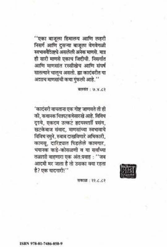 "एका बाजूला हिमालय आणि लहरी निसर्ग आणि दुस-या बाजूला वेगवेगळी स्वभाववैशिष्टये असलेली अनेक माणसे. मात्र ही सारी माणसे एकाच जिद्दीची. निसर्गात आणि माणसांत रस्सीखेच आणि संघर्ष सातत्याने चालूच असतो. हया कादंबरीत या अशाच माणसांची कथा गुंफली आहे." ’कादंबरी वाचताना एक गोष्ट जाणवते ती ही की, कथानक चित्रपटकथेसारखे आहे. विविध दॄश्ये, एकदम उत्कटं हदयस्पर्शी प्रसंग, खटकेबाज संवाद, माणसांच्या स्वभावाचे विविध नमुने, रुबाब दाखविणारे अधिकारी, कामसू, दारिद्रयात पिडलेले कामगार, भयानक कडे-कोसळणी व या सर्वांच्या तळाशी वाहणारा एक अंत:प्रवाह: "जब आदमी मर जाता है तो उसका क्या रहता है? एक यादगारी!"