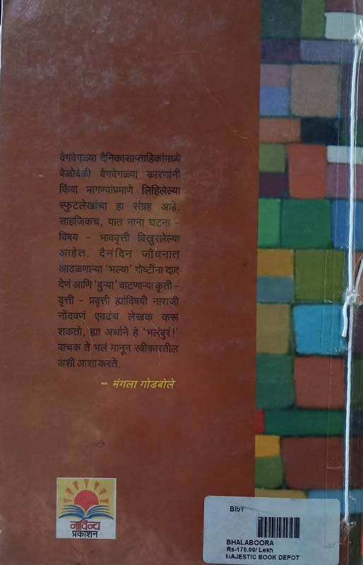 वेगवेगळ्या दैनिका साप्ताहिकांमध्ये वेळोवेळी वेगवेगळ्या कारणांनी किंवा मागण्यांप्रमाणे लिहिलेल्या स्फुटलेखांचा हा संग्रह आहे. साहजिकच, यात नाना घटना-विषय- भाववृत्ती विखुरलेल्या आहेत. दैनंदिन जीवनात आढळणाऱ्या 'भल्या' गोष्टीना दाद देणं आणि 'बुऱ्या' वाटणाऱ्या कृती--वृत्ती-प्रवृत्ती ह्यांविषयी नाराजी नोंदवण एवढंच लेखक करू शकतो, ह्या अर्थाने हे 'भलंबुरं' वाचक ते भलं मानून स्वीकारतील अशी आशा करते.