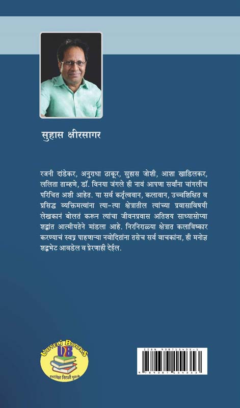 लेखक सुहास क्षीरसागर यांनी सहा कर्तृत्ववान, कलावान, उच्चशिक्षित व प्रसिद्ध व्यक्तिमत्वांना त्या त्या क्षेत्रातील त्यांच्या प्रवासाविषयी त्यांना बोलत करून त्यांचा जीवनप्रवास अतिशय साध्यासोप्या शब्दांत आत्मीयतेने मांडला आहे. निरनिराळ्या क्षेत्रात कलाविष्कार करण्याचं स्वप्न पाहणार्या नवादितांना तसेच सर्व वाचकांना ही मनोज्ञ शब्दभेट आवडेल व प्रेरणाही देईल.