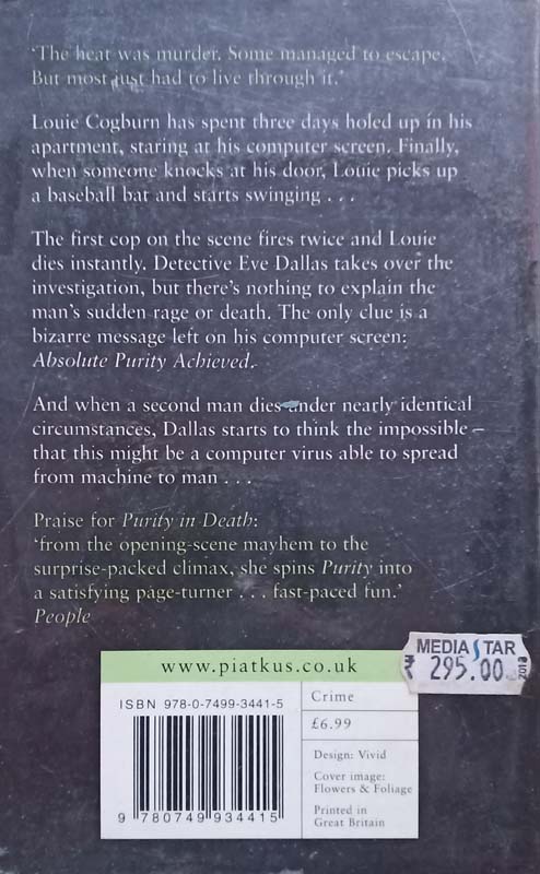 Louie Cogburn had spent three days holed up in his apartment, staring at his computer screen. His pounding headache was unbearable—like spikes drilling into his brain. And it was getting worse. Finally, when someone knocked at his door, Louie picked up a baseball bat, opened the door, and started swinging… The first cop on the scene fired his stunner twice and Louie died instantly. Detective Eve Dallas has taken over the investigation, but there’s nothing to explain the man’s sudden rage or death. The only clue is a bizarre message left on his computer screen: Absolute Purity Achieved. And when a second man dies under nearly identical circumstances, Dallas starts racking her brain for answers and for courage to face the impossible…that this might be a computer virus able to spread from machine to man…