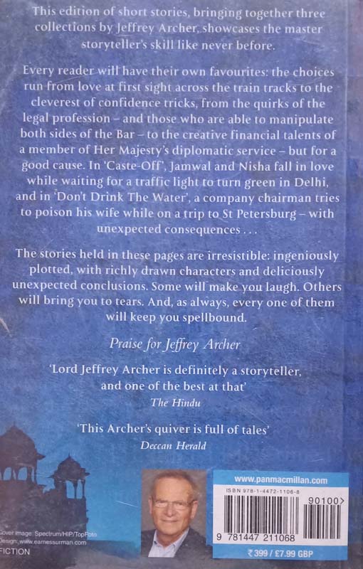 Every reader will have their own favourites: the choices run from love at first sight across the train tracks to the cleverest of confidence tricks, from the quirks of the legal profession – and those who are able to manipulate both sides of the Bar – to the creative financial talents of a member of Her Majesty’s diplomatic service – but for a good cause. In `Caste-Off’, Jamwal and Nisha fall in love while waiting for a traffic light to turn green in Delhi, and in `Don’t Drink The Water’, a company chairman tries to poison his wife while on a trip to St Petersburg – with unexpected consequences . . . The stories held in these pages are irresistible: ingeniously plotted, with richly drawn characters and deliciously unexpected conclusions. Some will make you laugh. Others will bring you to tears. And, as always, every one of them will keep you spellbound.