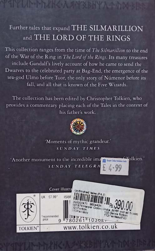 Unfinished Tales of Númenor and Middle-earth concentrates on the lands of Middle-earth and comprises Gandalfs lively account of how he came to send the Dwarves to the celebrated party at Bag-End, the story of the emergence of the sea god Ulmo before the eyes of Tuor on the coast of Beleriand, and an exact description of the military organization of the Riders of Rohan and the journey of the Black Riders during the hunt for the Ring. It also contains the only surviving story about the long ages of Númenor before its downfall, and all that is known about the Five Wizards sent to Middle-earth as emissaries of the Valar, about the Seeing Stones known aspalantíri, and about the legend of Amroth.