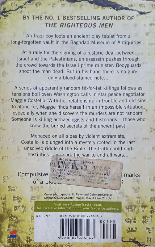 From the Number One bestselling author of The Righteous Men comes this staggering religious conspiracy thriller. The Last Testament: It was written. It was lost. It will save us all. April 2003: as the Baghdad Museum of Antiquities is looted, a teenage Iraqi boy finds an ancient clay tablet in a long-forgotten vault. He takes it and runs off into the night … Several years later, at a peace rally in Jerusalem, the Israeli prime minister is about to sign a historic deal with the Palestinians. A man approaches from the crowd and seems to reach for a gun – bodyguards shoot him dead. But in his hand was a note, one he wanted to hand to the prime minister. The shooting sparks a series of tit-for-tat killings which could derail the peace accord. Washington sends for trouble-shooter and peace negotiator Maggie Costello, after she thought she had quit the job for good. She follows a trail that takes her from Jewish settlements on the West Bank to Palestinian refugee camps, where she discovers the latest deaths are not random but have a distinct pattern. All the dead men are archaeologists and historians – those who know the buried secrets of the ancient past. Menaced by fanatics and violent extremists on all sides, Costello is soon plunged into high-stakes international politics, the worldwide underground trade in stolen antiquities and a last, unsolved riddle of the Bible.