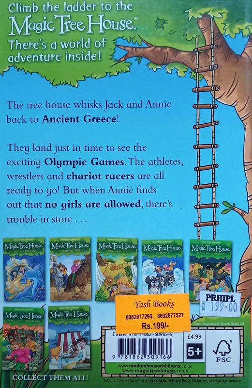 It's off to Ancient Greece for the children and the tree house ! They land just in time for the exciting Olympic Games, with the athletes, wrestlers and chariot racers all ready to go. But when Annie finds out no girls are allowed, there's trouble in store . . .