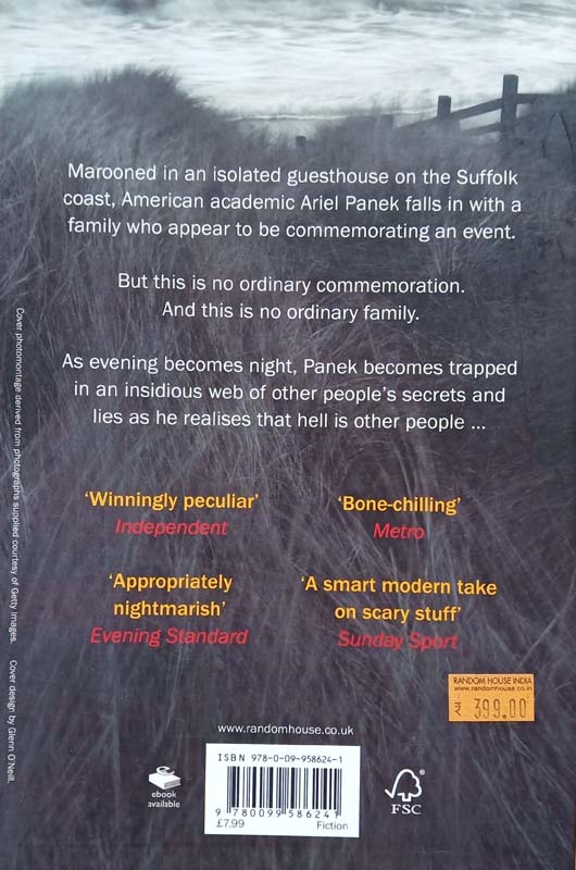 Enter Ariel Panek, a promising young academic en route from the USA to an important convention in Amsterdam. With his plane grounded by fog at Stanstead, he has been booked in for the night at the guesthouse. Discombobulated and jetlagged, he falls in with a family who appear to be commemorating an event.
