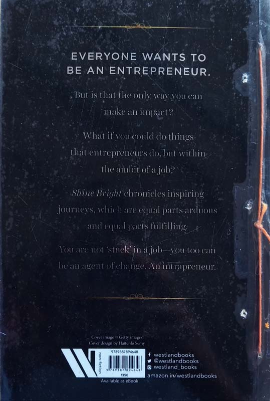 Everyone wants to be an entrepreneur. But is that the only way that you can make an impact? What if you could do things that entrepreneurs do, but within the ambit of a job? Shine Bright chronicles these inspiring journeys, which are equal parts arduous and equal parts fulfilling. You are not ‘stuck’ in a job—you too can be an agent of change. An intrapreneur. Includes chapters on: R. Mukundan, Tata Chemicals Manu Jain, Xiaomi, India Vineet Gautam, Bestseller India (Vero Moda, Jack & Jones) Amitabh Kant, NITI Aayog Pawan Goenka, Mahindra Auto Nitin Paranjpe, Unilever Harsh Bhanwala, NABARD Chitra Gupta, Principal, Zeenat Mahal Sarvodaya Kanya Vidyalaya No. 2