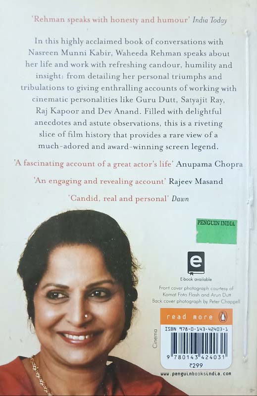 "A remarkable book' - Vogue In this highly acclaimed book of conversations with Nasreen Munni Kabir, Waheeda Rehman speaks about her life and work with refreshing honesty, humour and insight: from detailing her personal triumphs and tribulations to giving enthralling accounts of working with cinematic personalities like Guru Dutt, Satyajit Ray, Raj Kapoor and Dev Anand. Against all odds, she successfully made a life in cinema on her own terms. Filled with compelling anecdotes and astute observations, this is a riveting slice of film history that provides a rare view of a much-adored and award-winning screen legend.