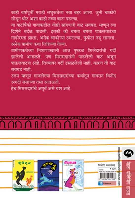 काही वर्षांपूर्वी मराठी लघुकथेला नवा बहर आला. जुनी चाकोरी सोडून धीट अशा काही नव्या वाटा पडल्या. या वाटांपैकी गावाकडील गोष्टी सांगणारी वाट सवघड. म्हणून त्या दिशेने वर्दळ वाढली. इतकी की बघता बघता पाऊलवाटेचा गाडीरस्ता झाला, अनेक चाकोया उमटल्या, फुपोटा उडू लागला, अनेक ग्रामीण कथा लिहिल्या गेल्या. ग्रामीणकथेच्या निशाणाखाली आज पुष्कळ शिलेदारांची गर्दी झालेली आढळते. पण मिरासदारांनी पाडलेली वाट अजून पाऊलवाटच आहे. तिच्यावर गर्दी उसळलेली नाही. कारण ती वाट सवघड नाही. उत्तम म्हणून गाजलेल्या मिरासदारांच्या कथांतून गावरान विनोद अगदी जसाच्या तसा आढळतो. हेच मिरासदारांचे अपूर्व असे यश आहे.