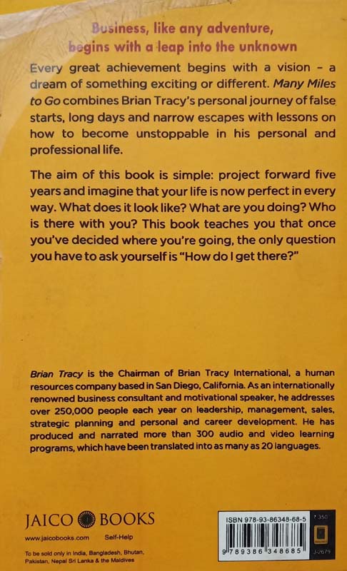 Business, like any adventure, begins with a leap into the unknown. Every great achievement begins with a vision – a dream of something exciting or different. Many Miles to Go combines Brian Tracy’s personal journey of false starts, long days and narrow escapes with lessons on how to become unstoppable in his personal and professional life. The aim of this book is simple: project forward five years and imagine that your life is now perfect in every way. What does it look like? What are you doing? Who is there with you? This book teaches you that once you’ve decided where you’re going, the only question you have to ask yourself is “How do I get there?” Brian Tracy is the Chairman of Brian Tracy International, a human resources company based in San Diego, California. As an internationally renowned business consultant and motivational speaker, he addresses over 250,000 people each year on leadership, management, sales, strategic planning and personal and career development. He has produced and narrated more than 300 audio and video learning programs, which have been translated into as many as 20 languages.