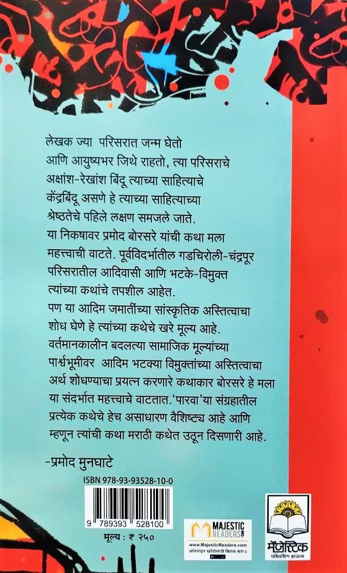 त्यांच्या कथांचे तपशील आहेत. पण या आदिम जमातींच्या सांस्कृतिक अस्तित्वाचा शोध घेणे हे त्यांच्या कथेचे खरे मूल्य आहे. वर्तमानकालीन बदलत्या सामाजिक मूल्यांच्या पार्श्वभूमीवर आदिम भटक्या विमुक्तांच्या अस्तित्वाचा अर्थ शोधण्याचा प्रयत्न करणारे कथाकार बोरसरे हे मला या संदर्भात महत्त्वाचे वाटतात. 'पारवा' या संग्रहातील प्रत्येक कथेचे हेच असाधारण वैशिष्ट्य आहे आणि म्हणून त्यांची कथा मराठी कथेत उठून दिसणारी आहे.
