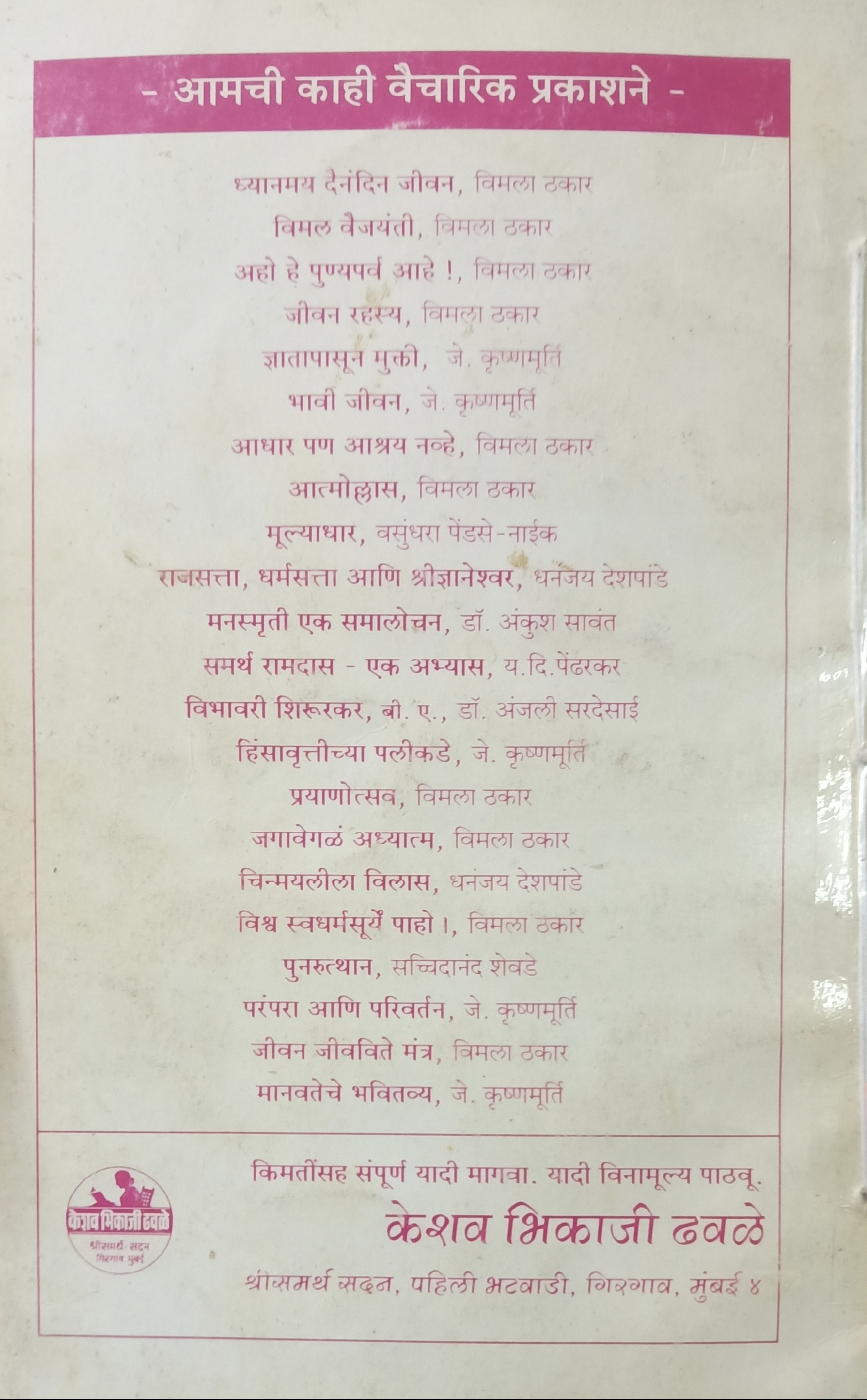 Publisher : Keshav Bhikaji Dhavale