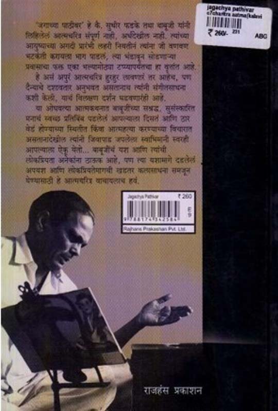 जगाच्या पाठीवर’ हे कै. सुधीर फडके तथा बाबूजी यांनी लिहिलेलं आत्मचरित्र संपूर्ण नाही, अर्धंदेखील नाही. त्यांच्या आयुष्याच्या अगदी प्रारंभी लहरी नियतीनं त्यांना जी वणवण भटकंती करायला भाग पाडलं, त्या भंडावून सोडणा-या प्रवासाचा फक्त एका भल्यामोठया टप्प्यापर्यंतचा हा वृत्तांत आहे. हे असं अपुरं आत्मचरित्र हुरहुर लावणारं तर आहेच, पण दैन्याचे दशावतार अनुभवत असतानाच त्यांनी संगीतसाधना कशी केली, याचं विलक्षण दर्शन घडवणारंही आहे. या ओघवत्या आत्मकथनात बाबूजींच्या सश्रद्घ, सुसंस्कारित मनाचं स्वच्छ प्रतिबिंब पडलेलं आपल्याला दिसतं आणि ठार वेडं होण्याच्या स्थितीत किंवा आत्महत्या करण्याच्या विचारात असतानादेखील त्यांनी जिवापाड जपलेला स्वाभिमानी स्वरही आपल्याला ऐकू येतो… बाबूजींचं यश आणि त्यांची लोकप्रियता अनेकांना ठाऊक आहे, पण त्या यशामागे दडलेलं अपयश आणि लोकप्रियतेमागची खडतर कलासाधना समजून घेण्यासाठी हे आत्मचरित्र वाचायलाच हवं.