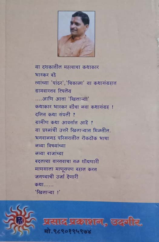 या दशकातील महत्वाचा कथाकार भास्कर बडे त्यांच्या 'पांढर' 'चिकाळा' या कथासंग्रहात ग्रामवास्तव टिपलेय .... आणि आता खिलाऱ्या' कथाकार भास्कर बडेचा नवा कथासंग्रह! दलित कथा संपली? ग्रामीण कथा आवर्तात आहे? या प्रश्नांची उत्तरे खिलाऱ्यात मिळतील. भगवानगड परिसरातील रोखठोक भाषा नव्या विषयांच्या नव्या बाजांच्या बदलत्या वास्तवाचा तळ शोधणारी माणसाला माणूसपण बहाल करत जगण्याची उर्जा देणारी कथा.... "खिलाऱ्या!"