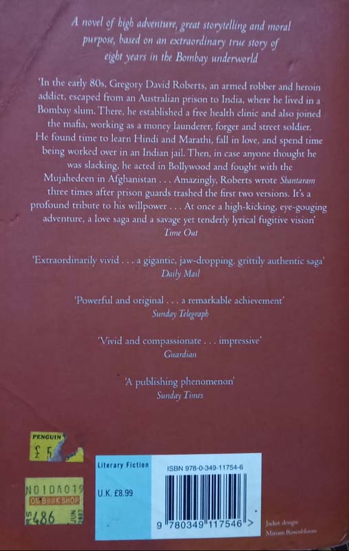 A novel of high adventure, great storytelling and moral purpose, based on an extraordinary true story of eight years in the Bombay underworld. 'In the early 80s, Gregory David Roberts, an armed robber and heroin addict, escaped from an Australian prison to India, where he lived in a Bombay slum. There, he established a free health clinic and also joined the mafia, working as a money launderer, forger and street soldier. He found time to learn Hindi and Marathi, fall in love, and spend time being worked over in an Indian jail. Then, in case anyone thought he was slacking, he acted in Bollywood and fought with the Mujahedeen in Afghanistan . . . Amazingly, Roberts wrote Shantaram three times after prison guards trashed the first two versions. It's a profound tribute to his willpower . . . At once a high-kicking, eye-gouging adventure, a love saga and a savage yet tenderly lyrical fugitive vision.' Time Out